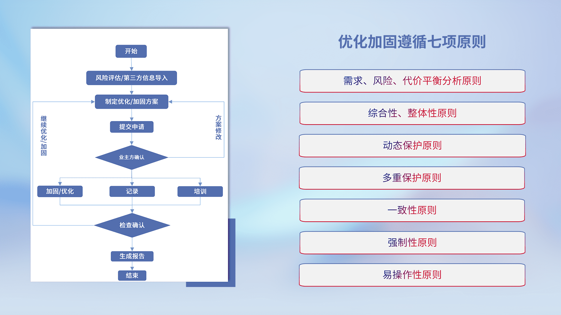 最大程度利用现有资产,,,,对评估发现的问题进行封堵与整改,,,,防止漏洞被利用,,,提升整体网络安全性,,,,为客户带来高标准的优化加固服务。。。。